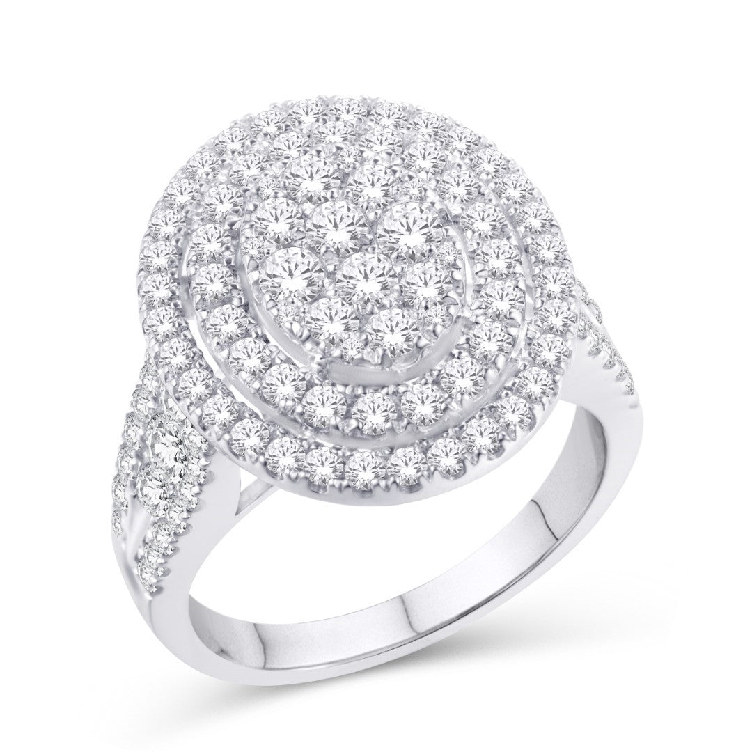 10 Karat White Gold 3.00 Carat Diamonds Oval Ladies Ring-0225649-WG