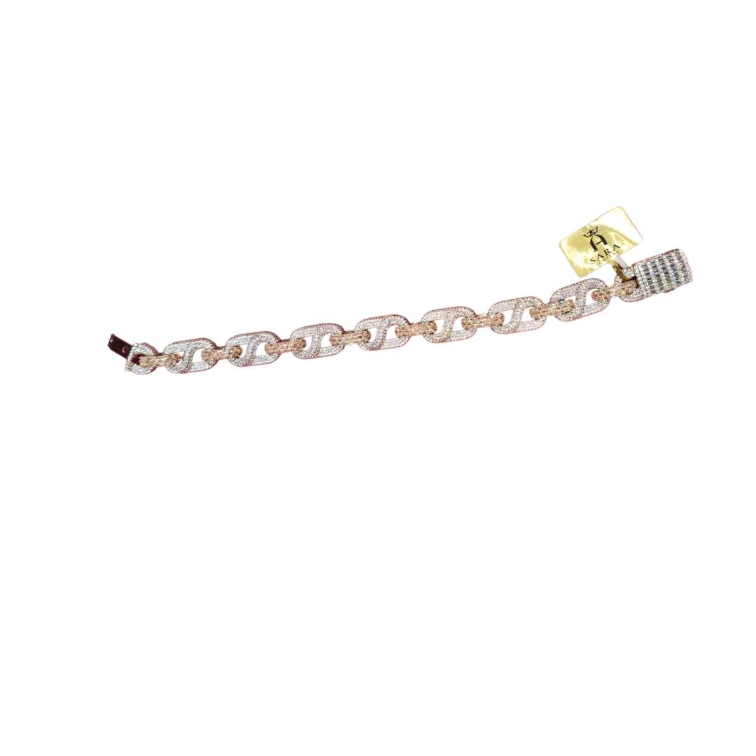 Stunning 925 Sterling Silver Two Tone Bracelet with Cz 8.5"