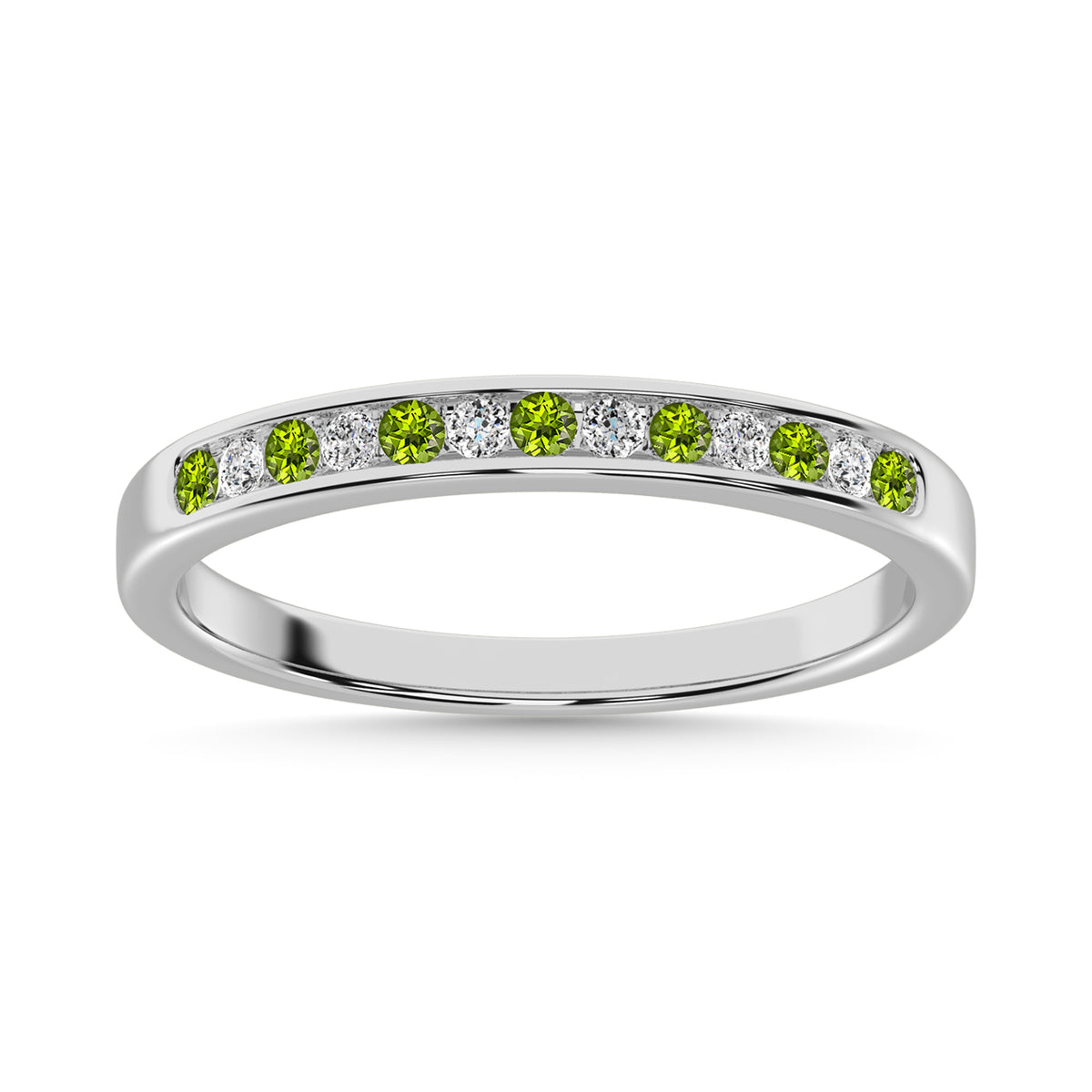 Peridot and Alternate Diamond 1/5 Ct.Tw. Ladies Machine Band in 14K White Gold