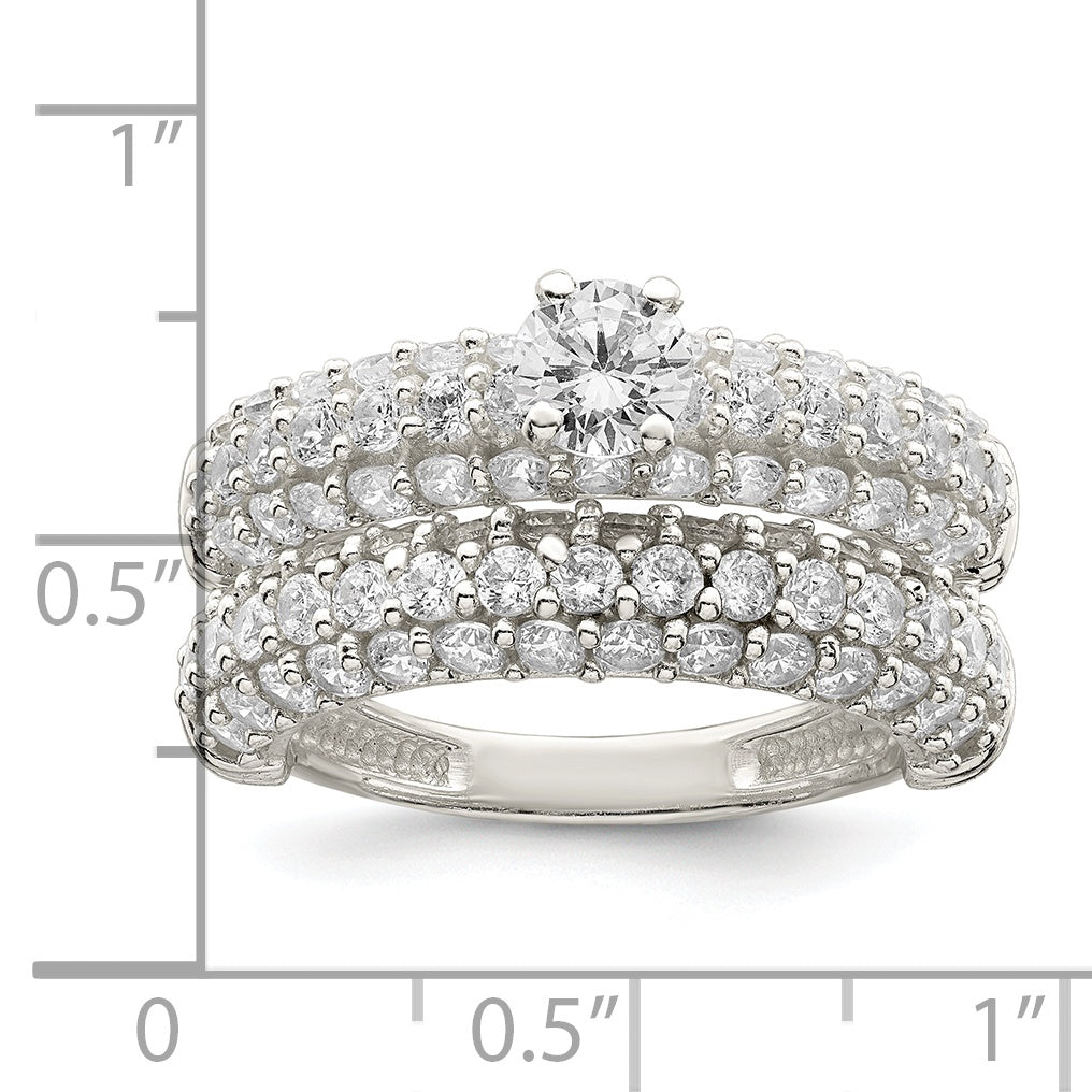 Sterling Silver Polished Pave CZ Wedding Ring Set