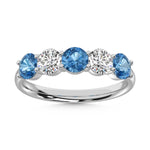 14K White Gold 1 Ct.Tw. 5 Stone Alternate White and Blue Lab Grown Diamond Band