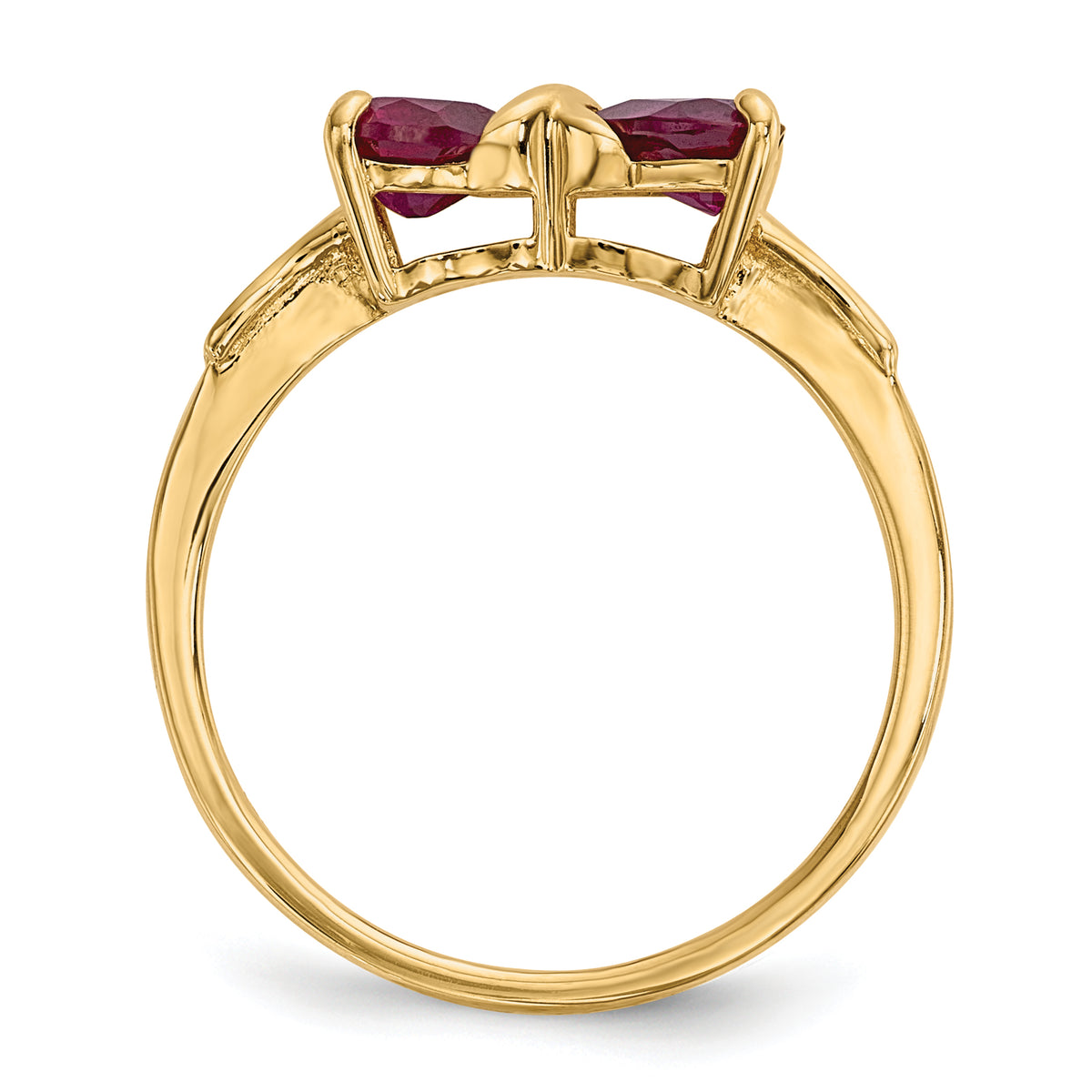 14K Yellow Gold Created Ruby Bow Ring – Polished Heart-Cut Design