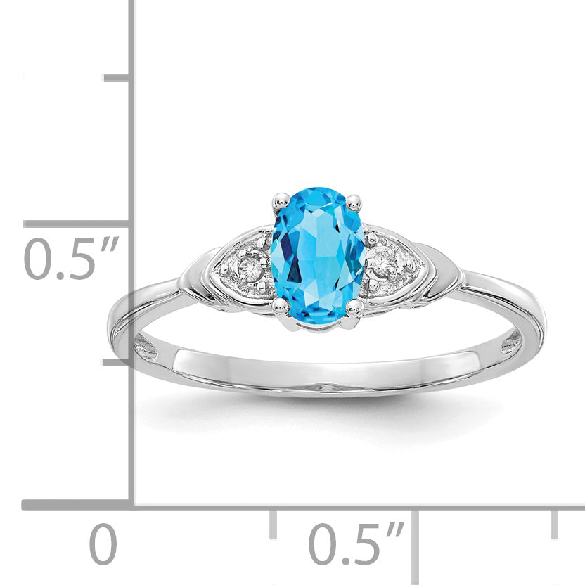 14K White Gold Swiss Blue Topaz & Diamond Ring – Oval-Cut Elegance