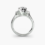 Designed with side stones that gracefully complement the center stone, this ring strikes a balance between classic elegance and added brilliance. Perfect for those who want a refined look with just the right amount of sparkle.