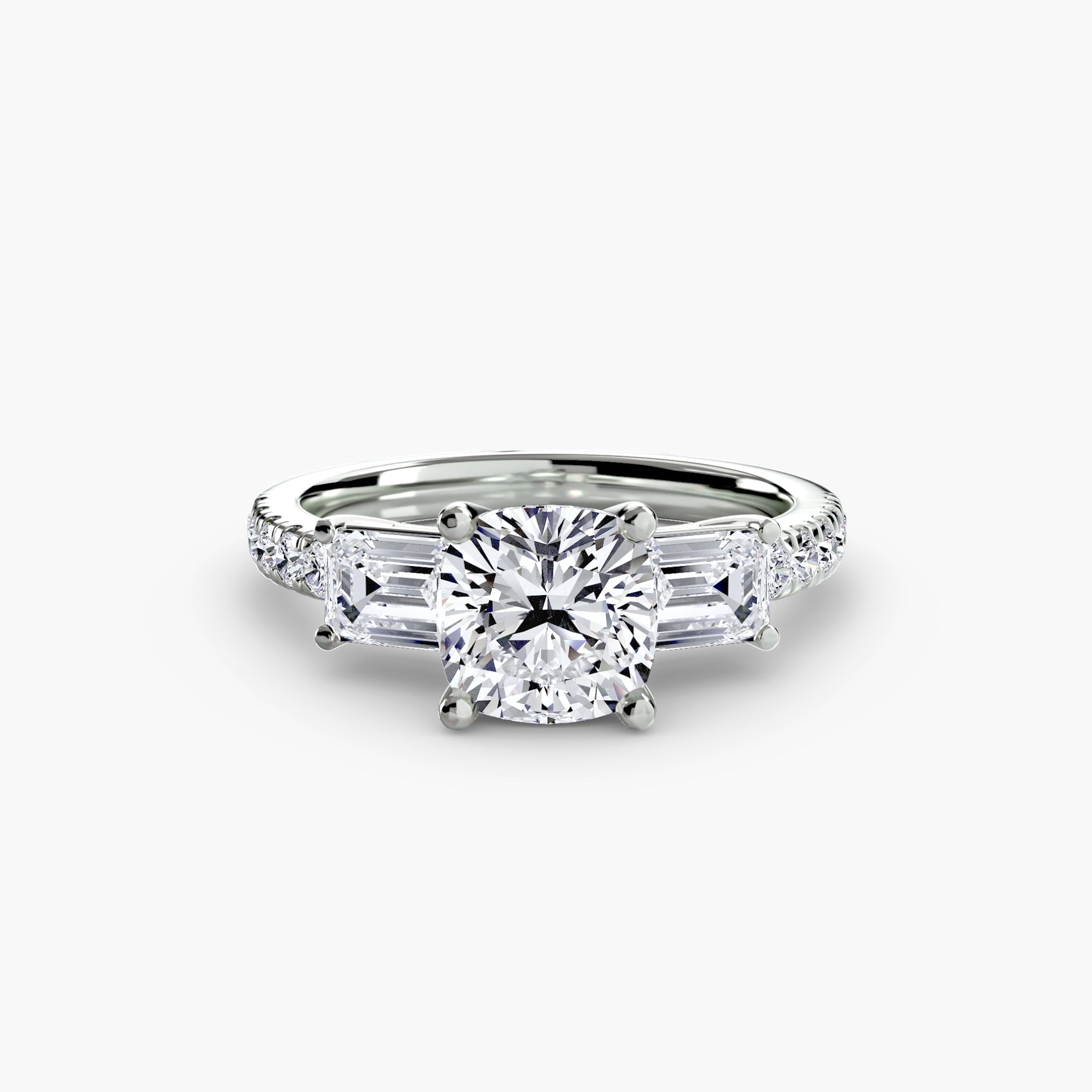 This elegant three-stone ring symbolizes your past, present, and future, elevated with a pavé band for extra sparkle and detail. A perfect union of meaning and brilliance.