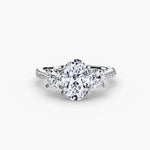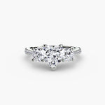 This elegant three-stone ring symbolizes your past, present, and future, elevated with a pavé band for extra sparkle and detail. A perfect union of meaning and brilliance.